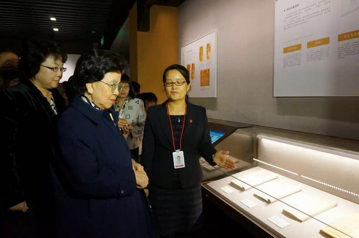 她一邊傾聽上海中醫(yī)藥大學(xué)校長徐建光的介紹,不時(shí)與同事們交流。作為全國最早的醫(yī)史類博物館,上海中醫(yī)藥博物館1938年成立至今,乾隆御制針灸銅人一直是鎮(zhèn)館之寶。陳馮富珍仔細(xì)端詳著這尊針灸銅人仿佛看到了悠遠(yuǎn)的中醫(yī)藥史。