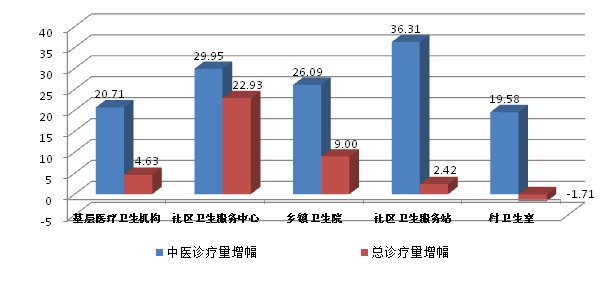 2012年9月提升工程實施以來,基層中醫藥服務可及性和可得性顯著增強,基層中醫藥發展助力醫改的作用日益顯現,基層中醫藥發展機制和模式不斷完善,基層中醫藥發展良好環境和氛圍逐步形成。截至2015年,全國已有96.93%的社區衛生服務中心、92.97%的鄉鎮衛生院、80.97%的社區衛生服務站、60.28%的村衛生室能夠提供中醫藥服務,基本完成“十二五”目標任務;同時,基層醫療衛生機構的中醫診療量占同類機構總診療量的比例達24.22%,明顯高于總診療量增幅,其中11個省份增幅達30%以上。
