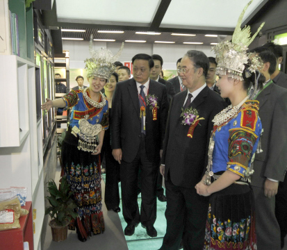 桑國(guó)衛(wèi)副委員長(zhǎng)(前右二)在王國(guó)強(qiáng)副部長(zhǎng)(前右三)陪同下參觀展覽 巨鋒/攝
