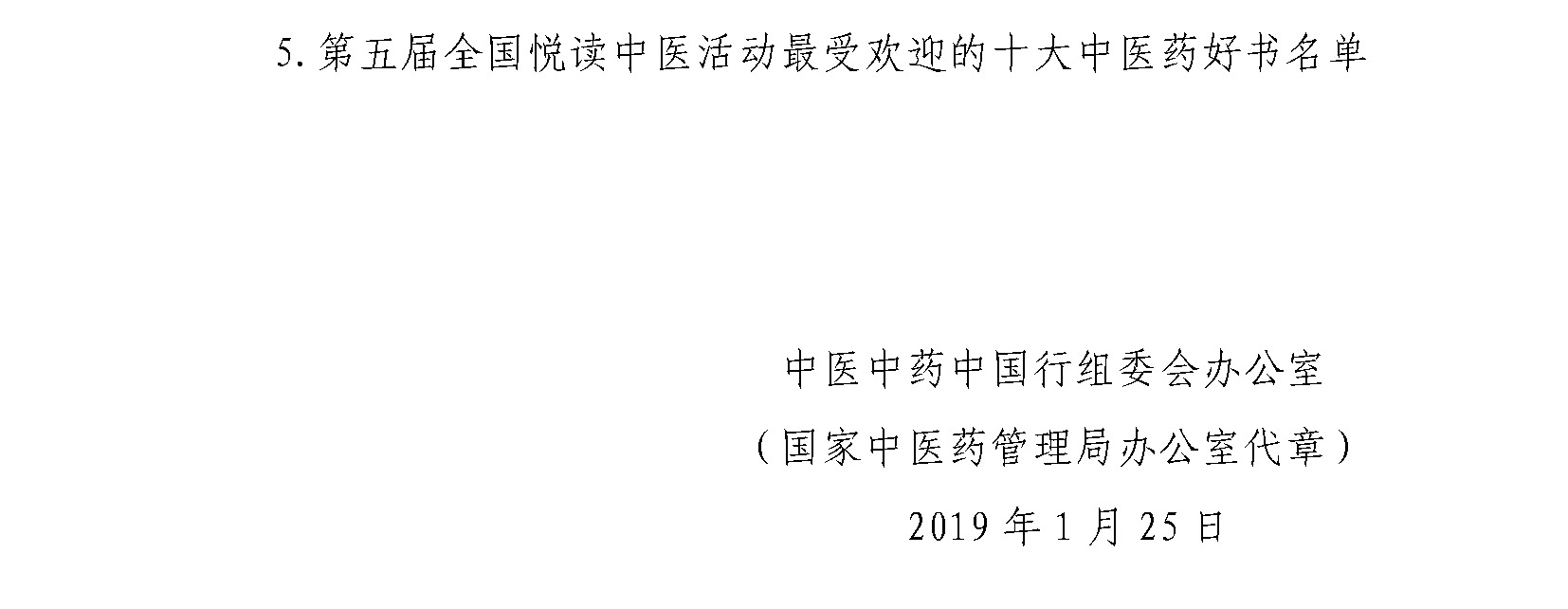 中醫(yī)中藥中國行組委會(huì)辦公室關(guān)于公布第五屆全國悅讀中醫(yī)活動(dòng)結(jié)果的通知