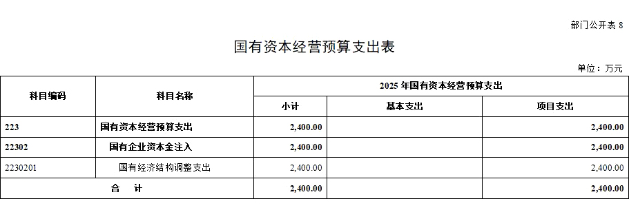 2025年國有資本經營預算數為2,400萬元,主要是國有經濟結構調整支出項目。