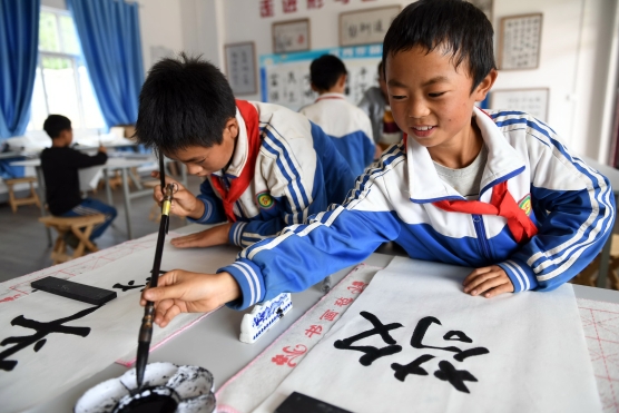 咸寧縣天龍小學(xué)書法興趣班的孩子