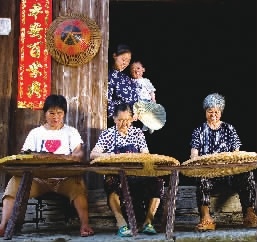 農民在家門口搟茶。彭國興 攝