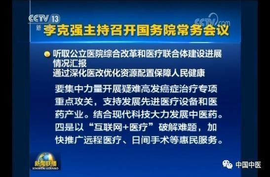 李克強主持召開國務院常務會議,聽取公立醫院綜合改革和醫療聯合體建設進展情況匯報, 要求通過深化醫改優化資源配置保障人民健康,部署進一步做好基本醫保全國聯網和異地就醫直接結算工作,減少群眾后顧之憂更多惠及人民。會議指出要結合現代科技,大力發展和應用中醫藥。