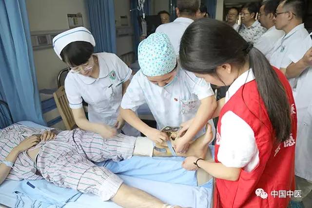 四川省骨科醫院對災傷病員制訂了完整精細的治療方案:在完善各項理化檢查的基礎上,對非手術傷員,以鄭氏手法整復、夾板或繃帶外固定,配合鄭氏傷科中藥內服外敷。對需要手術的傷員,由專家團隊精心設計手術方式,運用“圍手術期康復—臨床康復—功能康復”的三段式康復模式,配合電針、引導式功能鍛煉、關節松動、傳統關節粘連松解術、推拿等中醫治療手段。