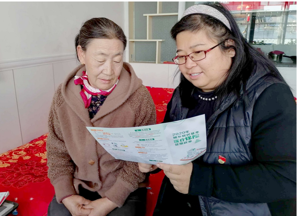 黃瑩(右)入戶向貧困戶講解最新醫保政策。李森/攝