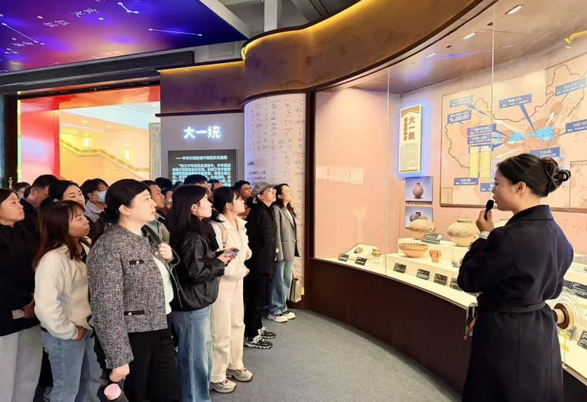 在《鑄牢中華民族共同體意識(shí)文物古籍展》專題展廳,團(tuán)員青年參觀了“大一統(tǒng)”“大交融”“大團(tuán)結(jié)”等多個(gè)主題展覽。通過一件件珍貴的文物、古籍、檔案,大家深入了解了中華民族“多元一體”的歷史脈絡(luò),感受到各民族在文化上兼收并蓄、經(jīng)濟(jì)上相互依存、情感上相互親近的深厚基礎(chǔ),團(tuán)員青年更加真切體會(huì)到各民族在歷史長(zhǎng)河中形成的文化認(rèn)同與情感共鳴。