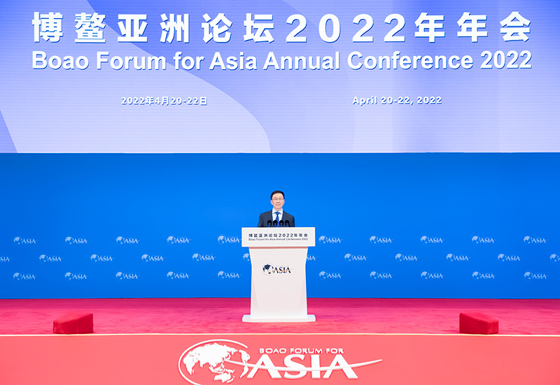 4月21日,中共中央政治局常委、國務院副總理韓正在海南博鰲出席博鰲亞洲論壇2022年年會開幕式,集體會見論壇理事和戰略合作伙伴代表,并同中外企業家代表座談。新華社記者 丁海濤 攝