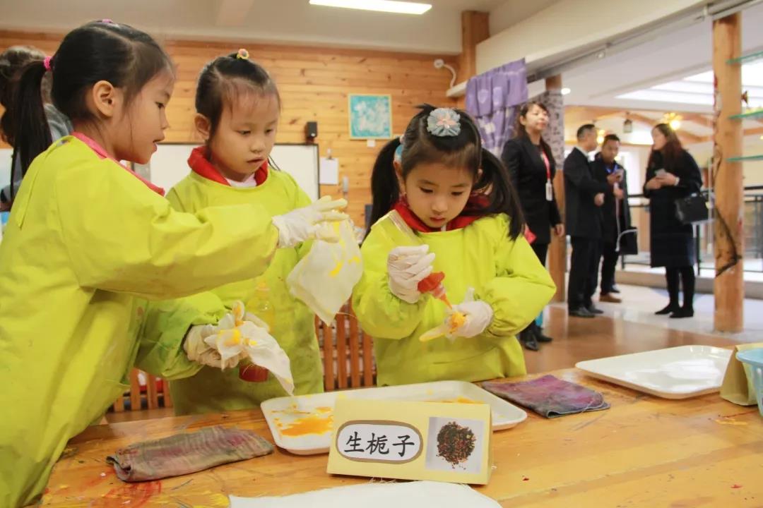 ▲金蘋果新蒙特梭利幼稚園(南苑園)的孩子們正在制作中藥顏料。