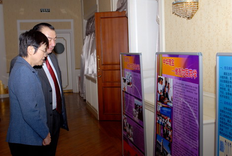 衛生部副部長兼國家中醫藥管理局局長佘靖在第三屆全國民族醫藥工作會議上認真參觀民族醫藥成果展